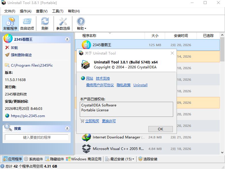 此外,该软件提供有关每个已安装程序的详细信息,包括其大小、安装日期和发布者,帮助用户做出关于卸载哪个程序的明智决策。